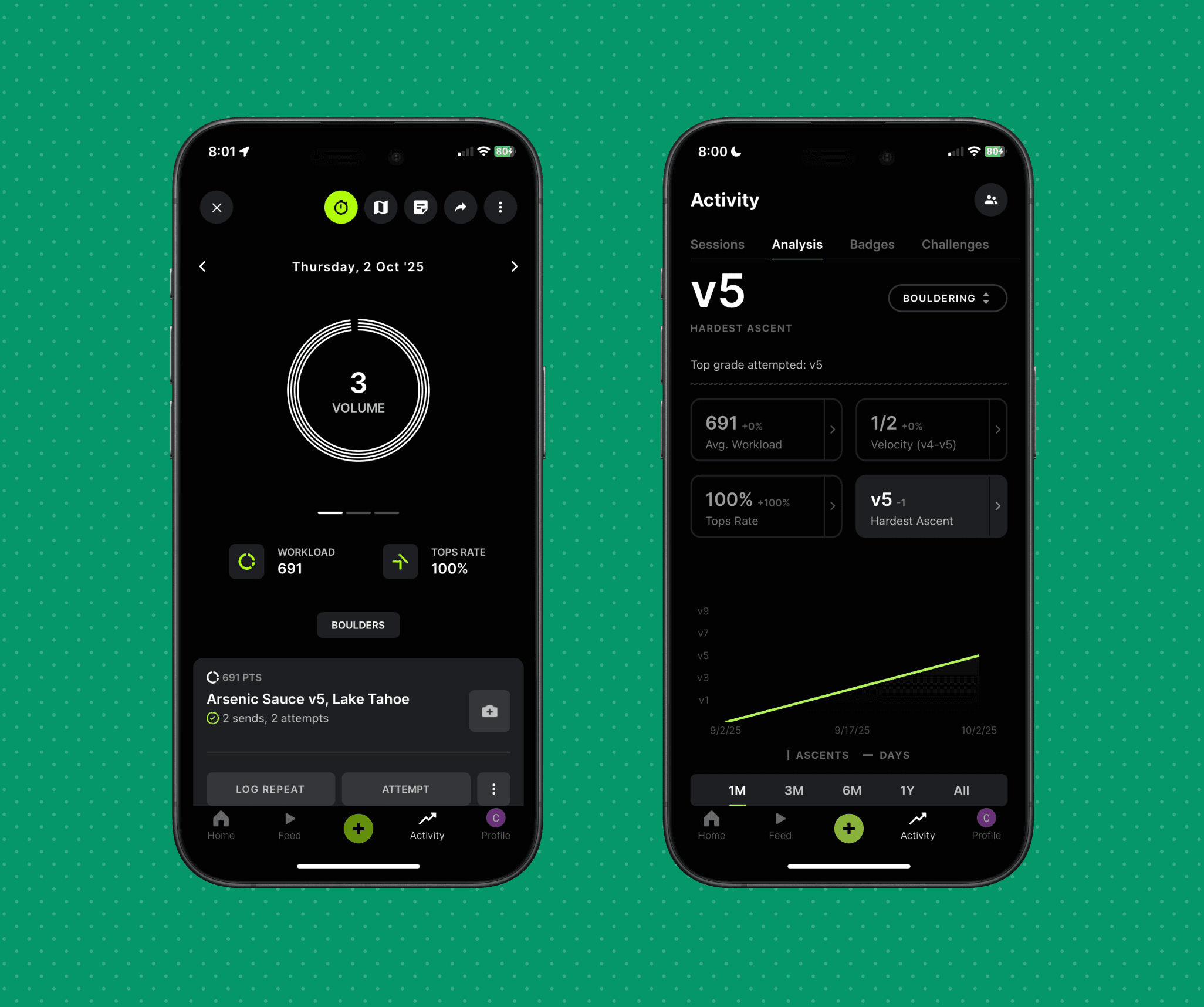 In a month-long class project with a team of 1 Project Manager, 2 UX Researchers and 2 Motion Designers, I led the user experience and interaction design for a progress tracking feature that helps climbers reflect on and learn from past attempts, supporting long-term engagement and retention.