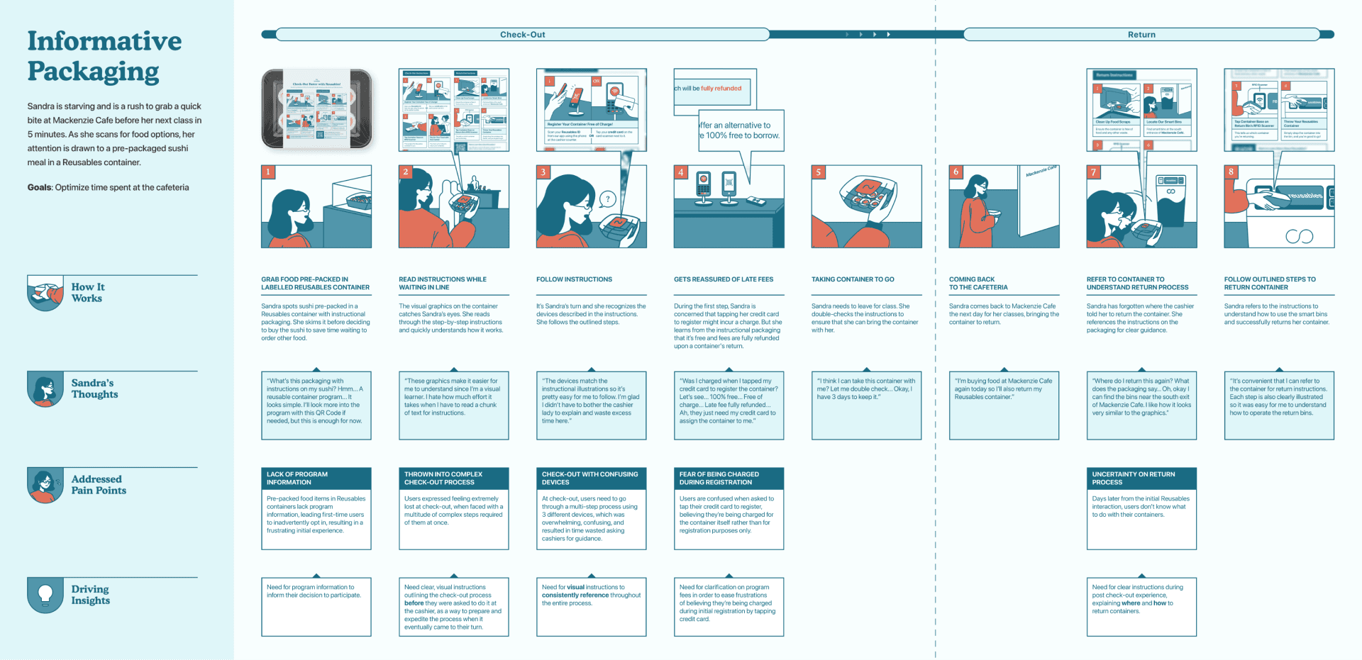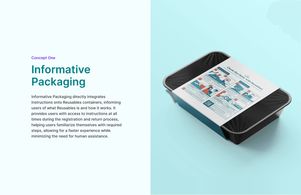 I designed an eco-friendly, dishwasher-safe sticker placed directly on the container to provide clear return instructions for users.